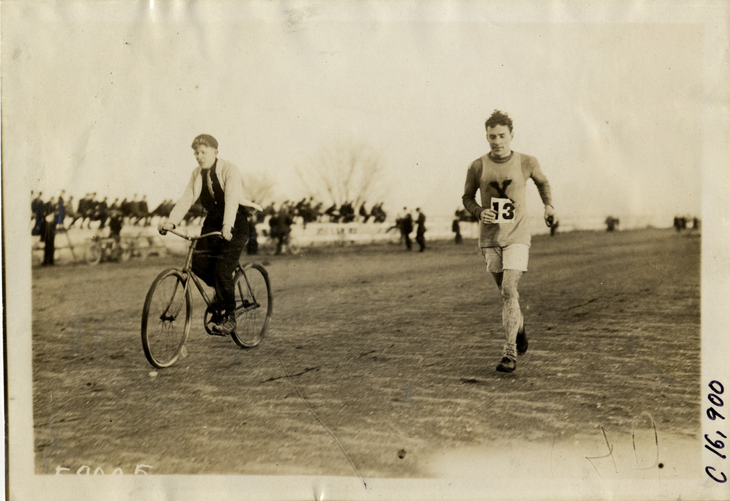 Favorite this☆ Bicyclist following marathon runner Description: View of bicyclist following runner in marathon race. Handwritten on back: "Sporting events--Track and field, 1910." Details Resource ID: na018619 Subject: Runners (Sports) Bicycles Cyclists Marathon running--Competitions Photographic prints Date Issued: 1910 Format: 1 photographic print ; 5 x 7 in. Member of: National Automotive History Collection Lazarnick Collection Filing Location: Sporting events--Track and field, 1910 #3 Negative Number: Negative #C16,900 Rights: Physical rights are retained by DPL. Copyright is retained in accordance with U.S. copyright laws.