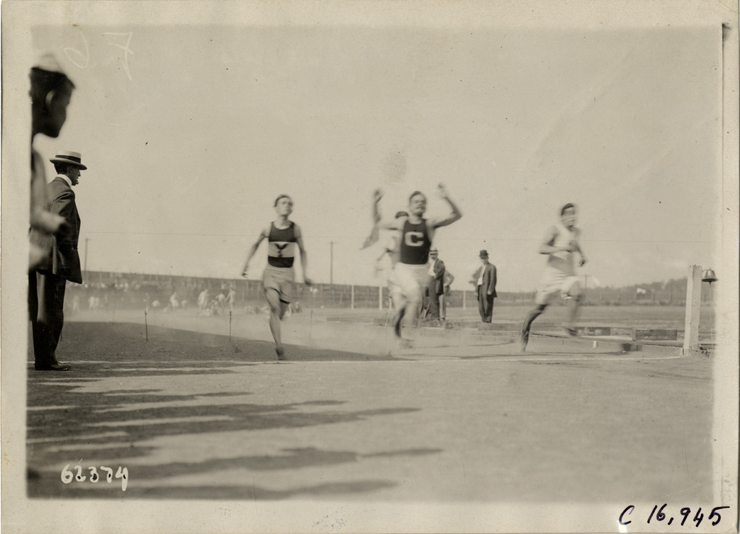 Runners crossing finish line, 1910 Flatbush Marathon