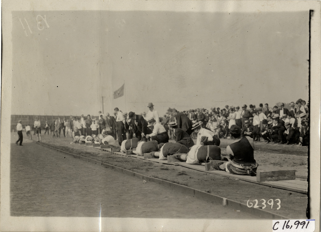 Men competing in tug of war contest, 1910 Flatbush Marathon