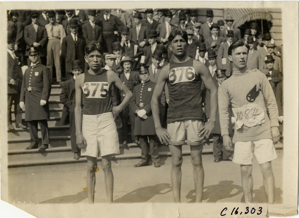Runners Louis Tewanima, Mitchell Arquette and Gaston Strobino, 1911 Evening Mail Modified Marathon