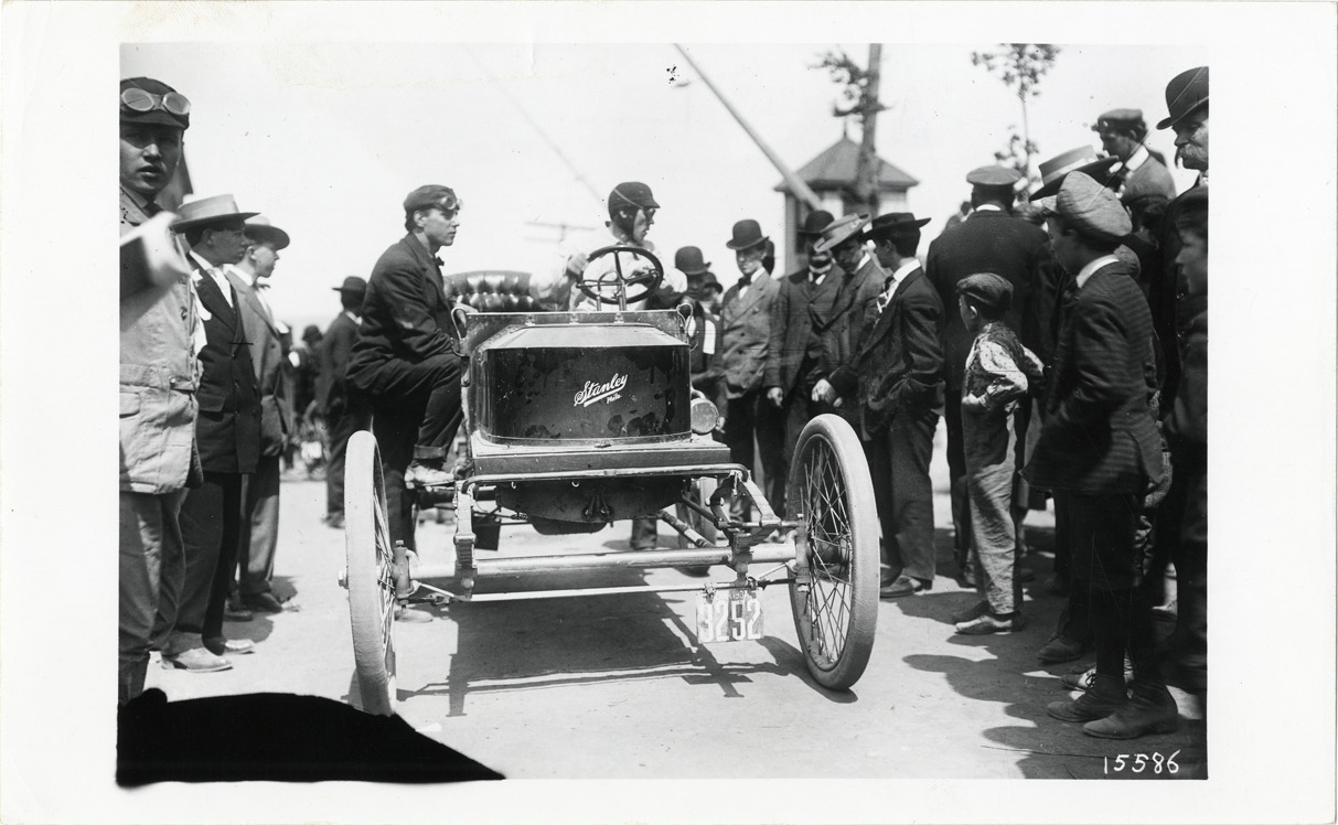 Favorite this☆ Driver in Stanley Steamer automobile Description: View of driver in Stanley Steamer car. Man stands next to car with foot on running board; onlookers surround car. Handwritten on back: "Stanley Steamer, circa 1907." Details Resource ID: na018871 Subject: Stanley Steamer automobile Automobiles, Steam Photographic prints Date Issued: 1907 (year approximate) Format: 1 photographic print ; 5 x 8.25 in. Member of: National Automotive History Collection Lazarnick Collection Filing Location: Stanley Steamer Rights: Physical rights are retained by DPL. Copyright is retained in accordance with U.S. copyright laws.
