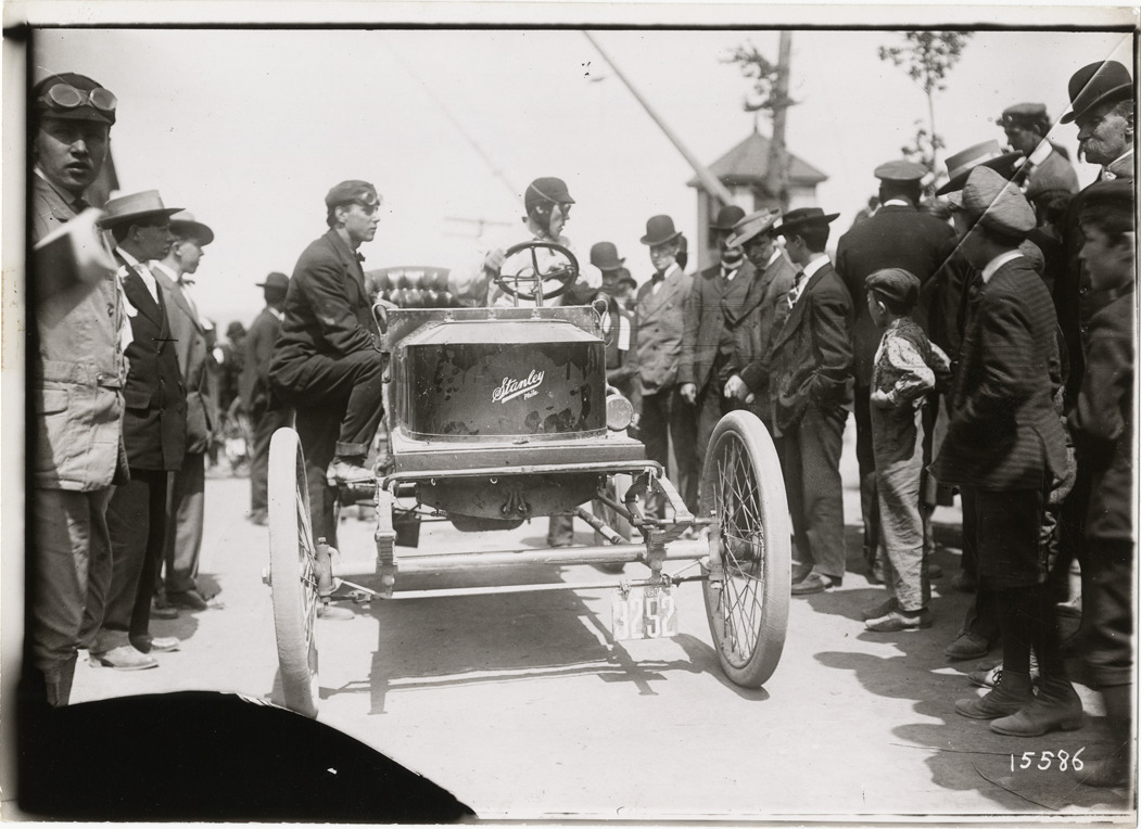 Favorite this☆ Driver in Stanley Steamer automobile Description: View of driver in Stanley Steamer car. Man stands next to car with foot on running board; onlookers surround car. Stamped on back: "Photographic illustration by Nick Lazarnick, 230 Park Ave., N.Y." Handwritten on back: "Stanley Steamer, circa 1907." Details Resource ID: na018876 Creator: Lazarnick, Nick Subject: Stanley Steamer automobile Automobiles, Steam Photographers--New York (State)--New York Photographic prints Date Issued: 1907 (year approximate) Format: 1 photographic print ; 5 x 7 in. Member of: National Automotive History Collection Lazarnick Collection Filing Location: Stanley Steamer Rights: Physical rights are retained by DPL. Copyright is retained in accordance with U.S. copyright laws.
