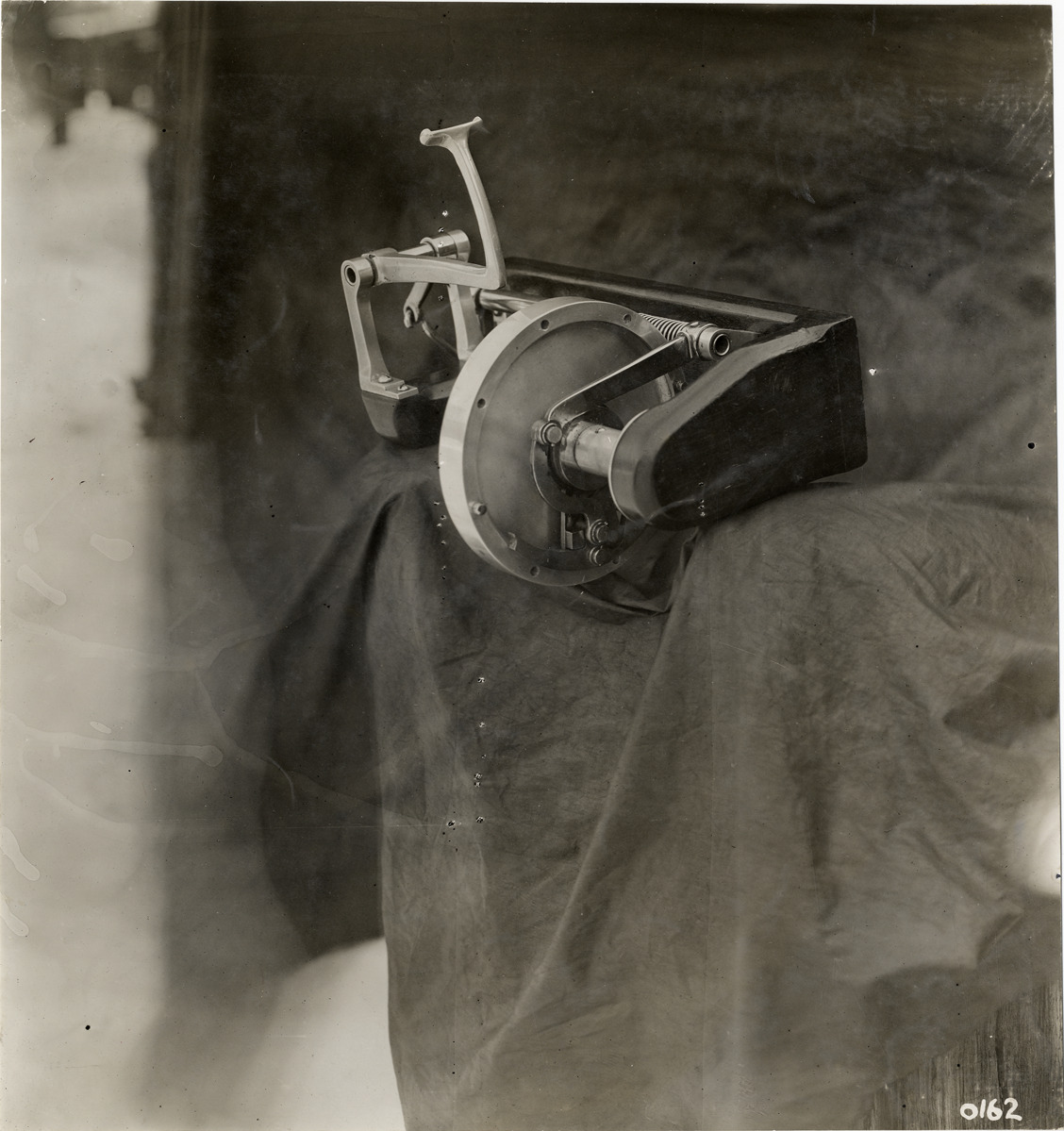 Close-up view of Wilkinson starter, manufactured by J. Franklin Wilkinson. Stamped on back: "When this photograph is used for publication purposes in catalogues, pamphlets, etc. credit as follows will be appreciated: Photo by Spooner & Wells." Handwritten on back: "Starters, Wilkinson starter, 1910."