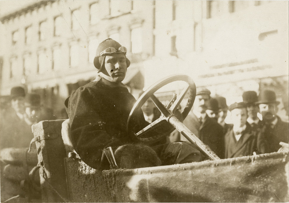 Driver in Stearns automobile, Worcester, Massachusetts