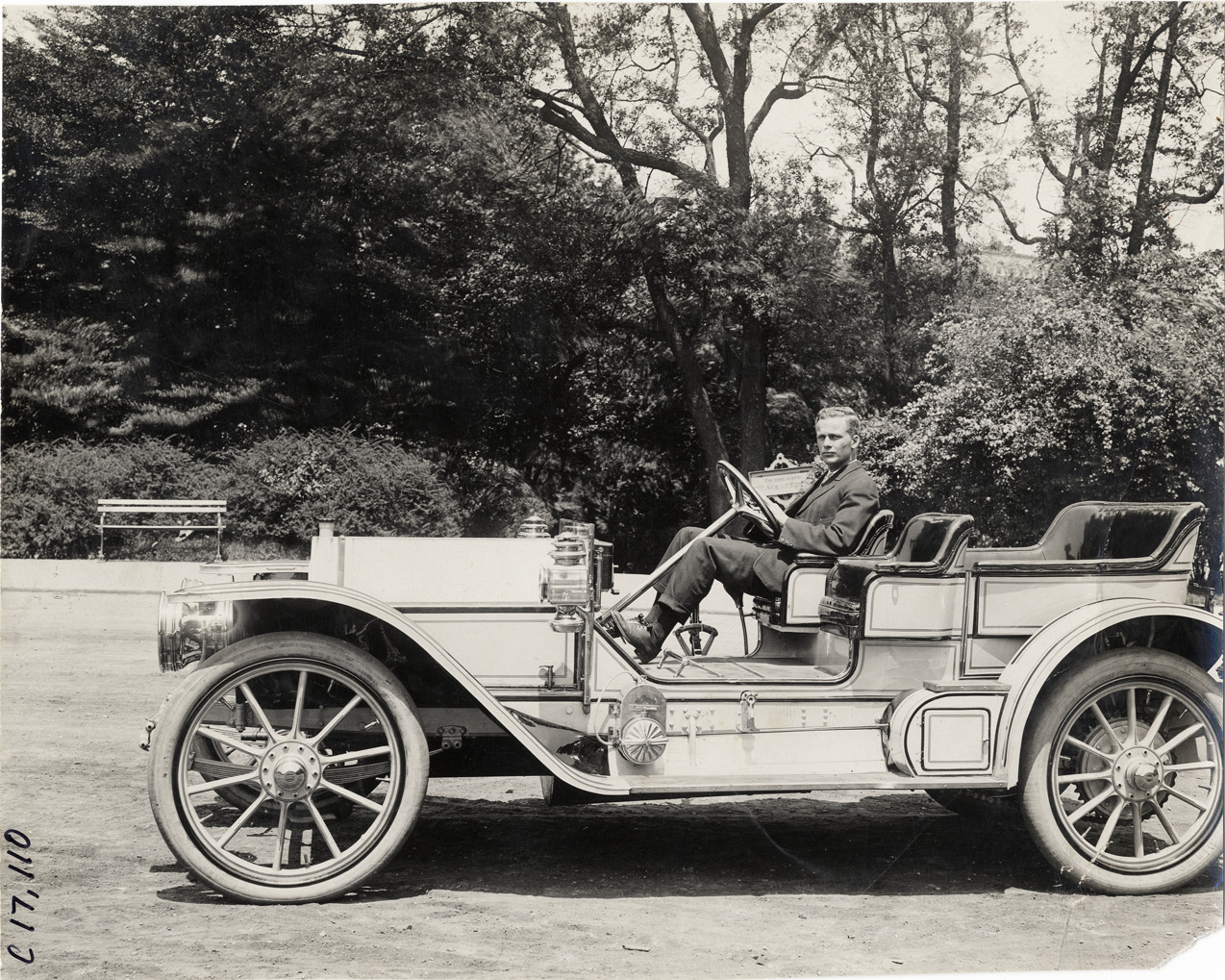 Favorite this☆ Guy Vaughn in 1908 Stearns automobile Description: View of driver Guy Vaughn posing in 1908 Stearns car. Handwritten on back: "Guy Vaughn. Stearns, 1908." Details Resource ID: na018931 Subject: Automobiles F.B. Stearns Company Automobile racing drivers Photographic prints Date Issued: 1908 Format: 1 photographic print ; 7 x 8.5 in. Member of: National Automotive History Collection Lazarnick Collection Filing Location: Stearns, 1908 Negative Number: Negative #C17,110 Rights: Physical rights are retained by DPL. Copyright is retained in accordance with U.S. copyright laws.