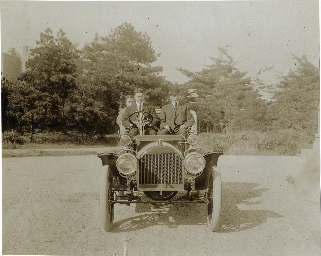 Favorite this☆ Driver and passengers in 1907 Stoddard-Dayton automobile Description: Front view of three men in 1907 Stoddard-Dayton car. Handwritten on back: "Stoddard-Dayton, 1907." Details Resource ID: na018956 Subject: Automobiles Dayton Motor Car Company Photographic prints Date Issued: Unknown year Format: 1 photographic print ; 7 x 9 in. Member of: National Automotive History Collection Lazarnick Collection Filing Location: Stoddard-Dayton Rights: Physical rights are retained by DPL. Copyright is retained in accordance with U.S. copyright laws.