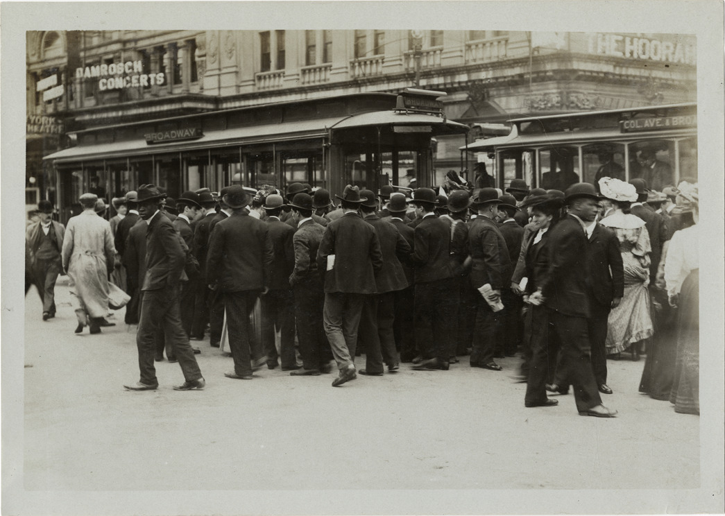 Favorite this☆ Crowd standing next to streetcars, New York Description: View of crowd of men and women standing next to Broadway and Columbus Ave. streetcars in New York. Handwritten on back: "New York. Street scenes." Details Resource ID: na018995 Subject: Cable cars (Streetcars)--New York (State)--New York Crowds--New York (State)--New York Photographic prints Date Issued: Unknown year Format: 1 photographic print ; 5 x 7 in. Member of: National Automotive History Collection Lazarnick Collection Filing Location: Street scenes Rights: Physical rights are retained by DPL. Copyright is retained in accordance with U.S. copyright laws.