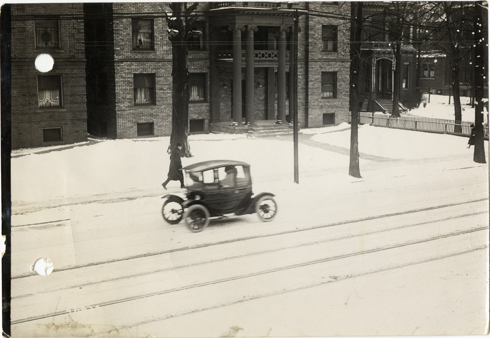 Favorite this☆ Automobile traveling on Woodward Avenue Description: View of car traveling past brick apartment building on snow-covered Woodward Ave. Handwritten on back: "Taken on Woodward Ave., across from S&W office. Streets--Detroit." Details Resource ID: na019096 Subject: Automobiles--Michigan--Detroit Apartment houses--Michigan--Detroit Woodward Avenue (Mich.) Photographic prints Date Issued: Unknown year Format: 1 photographic print ; 4.5 x 6.5 in. Member of: National Automotive History Collection Lazarnick Collection Filing Location: Streets--Detroit Rights: Physical rights are retained by DPL. Copyright is retained in accordance with U.S. copyright laws.