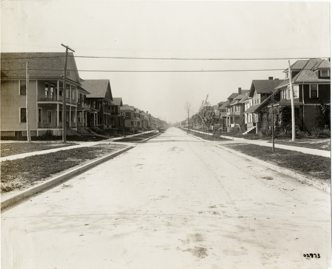 View of houses on north Woodward Ave. Handwritten on back: "N. Woodward. Streets--Detroit."
