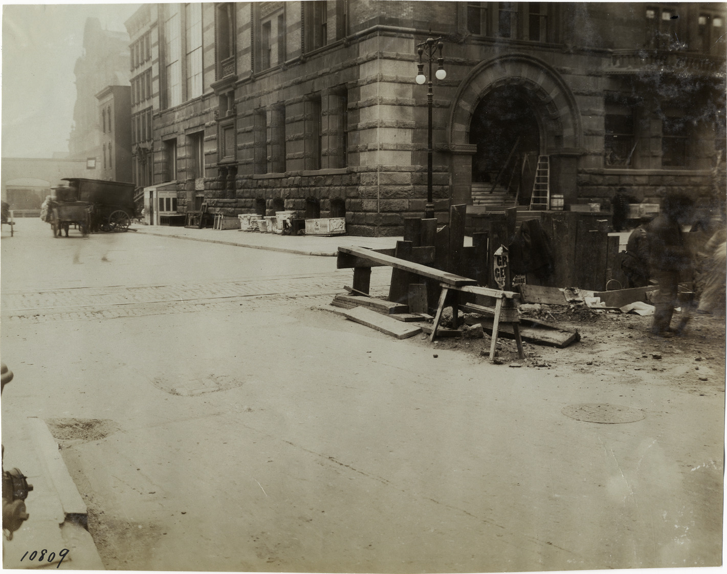 Favorite this☆ Workers in construction area on street, New York Description: View of men working next to makeshift wooden barrier in street. Stone building with arched entrance in background. Handwritten on back: "Streets--New York, 1906." Details Resource ID: na019141 Subject: Construction workers--New York (State)--New York Streets--New York (State)--New York Stone buildings--New York (State)--New York Photographic prints Date Issued: 1906 Format: 1 photographic print ; 7.5 x 9.5 in. Member of: National Automotive History Collection Lazarnick Collection Filing Location: Streets--New York #1 Rights: Physical rights are retained by DPL. Copyright is retained in accordance with U.S. copyright laws.