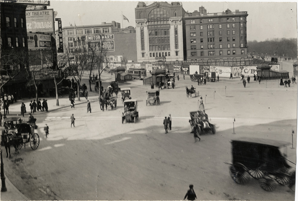 Favorite this☆ Traffic on street, New York Description: View of cars, horse-drawn wagons, streetcar and pedestrians on street in New York. Commercial buildings and subway entrances in background. Handwritten on back: "Streets--New York, 1908." Details Resource ID: na019169 Subject: Streets--New York (State)--New York Automobiles--New York (State)--New York Horse-drawn vehicles--New York (State)--New York Cable cars (Streetcars)--New York (State)--New York Photographic prints Date Issued: 1908 Format: 1 photographic print ; 4.5 x 6.5 in. Member of: National Automotive History Collection Lazarnick Collection Filing Location: Streets--New York #2 Rights: Physical rights are retained by DPL. Copyright is retained in accordance with U.S. copyright laws.