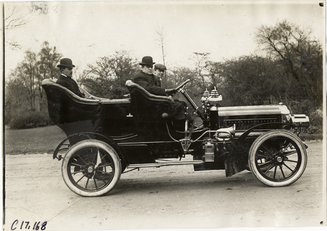 Favorite this☆ Motorists in 1904 Thomas Flyer automobile Description: View of driver and passengers in 1904 Thomas Flyer car. Handwritten on back: "Thomas Flyer, 1904." Details Resource ID: na019241 Subject: Automobiles E.R. Thomas Motor Company Photographic prints Date Issued: Unknown year Format: 1 photographic print ; 5 x 7 in. Member of: National Automotive History Collection Lazarnick Collection Filing Location: Thomas Flyer Negative Number: Negative #C17,168 Rights: Physical rights are retained by DPL. Copyright is retained in accordance with U.S. copyright laws.