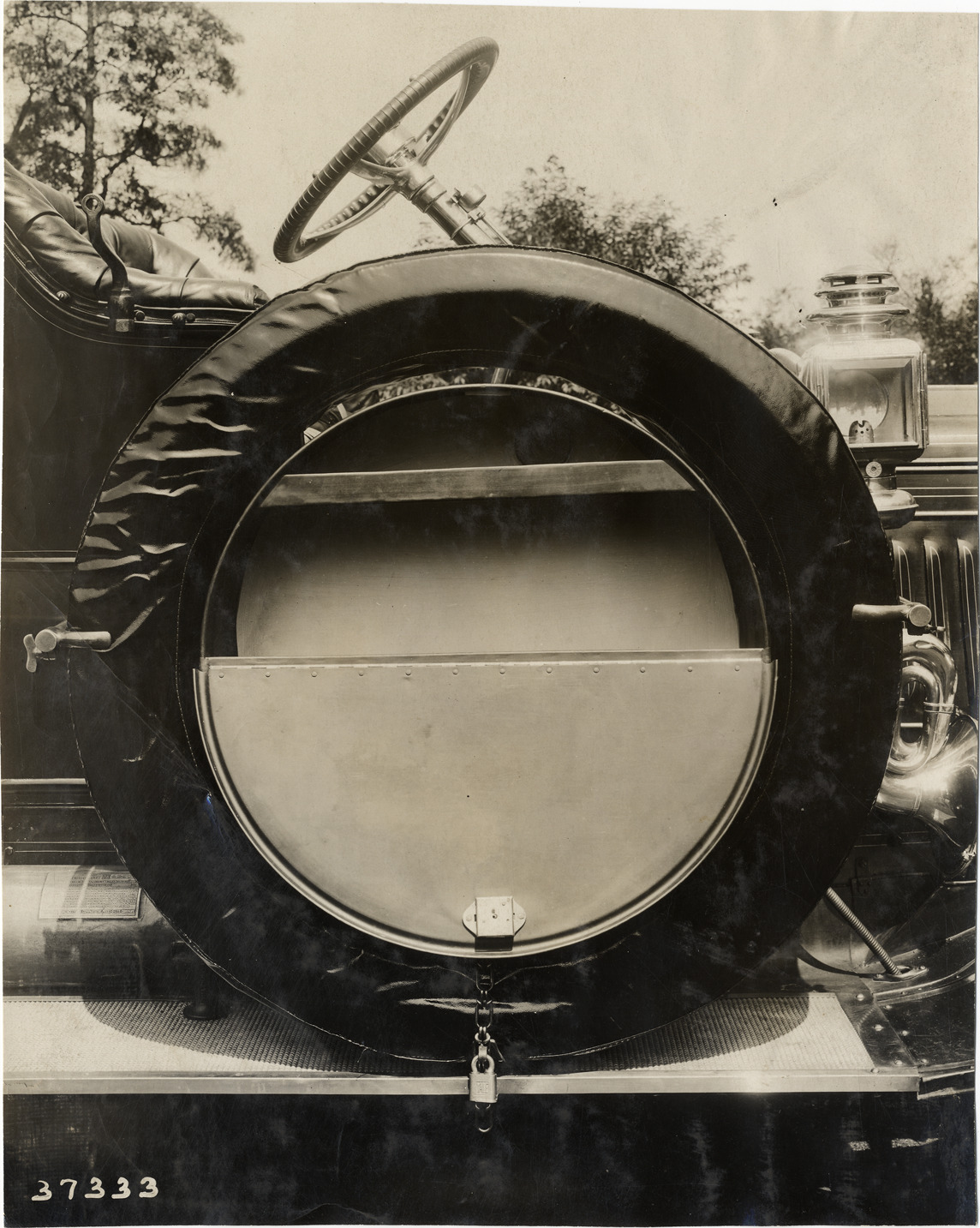 Favorite this☆ Tire cover Description: View of tire cover attached to car. Handwritten on back: "Tire trunks and covers, 1910." Details Resource ID: na019265 Subject: Automobiles--Tires--Equipment and supplies Photographic prints Date Issued: 1910 Format: 1 photographic print ; 9.5 x 7.75 in. Member of: National Automotive History Collection Lazarnick Collection Filing Location: Tire trunks and covers Rights: Physical rights are retained by DPL. Copyright is retained in accordance with U.S. copyright laws.