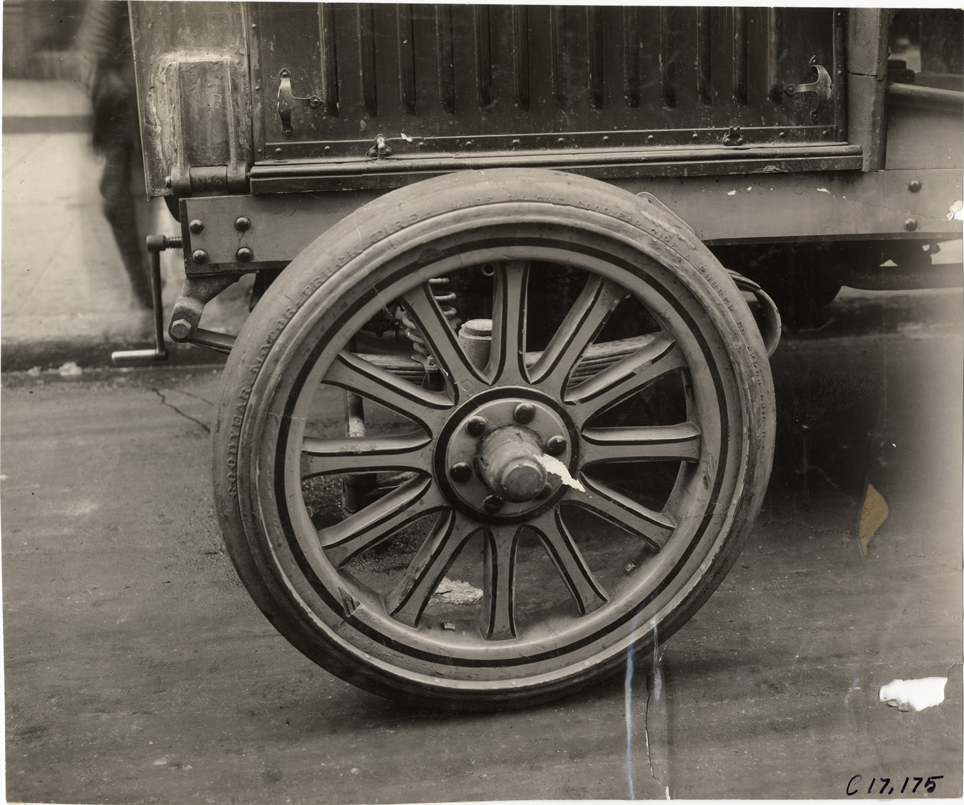 Favorite this☆ Goodyear tire Description: Close-up view of Goodyear tire on truck. Stamped on back: "Spooner & Wells, Inc., photographers, telephones 3472-3473 Columbus, 1931 Broadway, New York." Handwritten on back: "Tires--Goodyear, 1908." Details Resource ID: na019279 Creator: Spooner & Wells Subject: Trucks--Tires Goodyear Tire and Rubber Company Photographers--New York (State)--New York Photographic prints Date Issued: 1908 Format: 1 photographic print ; 7.5 x 9 in. Member of: National Automotive History Collection Lazarnick Collection Filing Location: Tires #1 Negative Number: Negative #C17,175 Rights: Physical rights are retained by DPL. Copyright is retained in accordance with U.S. copyright laws.