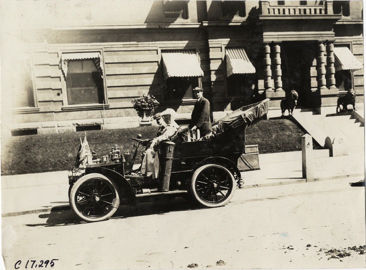 Motorists posing with automobile, 1908 Automobile Club of America Ideal Tour