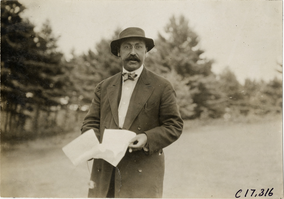 Man holding document, 1906 Boston to Bretton Woods Tour