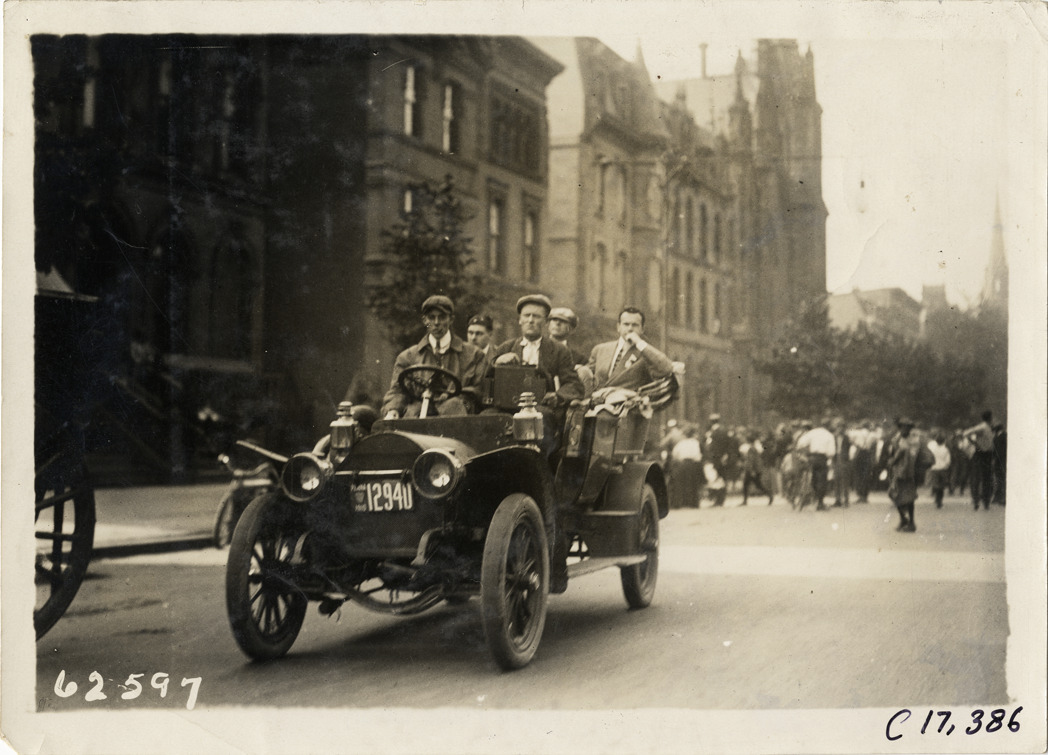 Motorists in automobile, 1910 Brooklyn Dealers Reliability Run