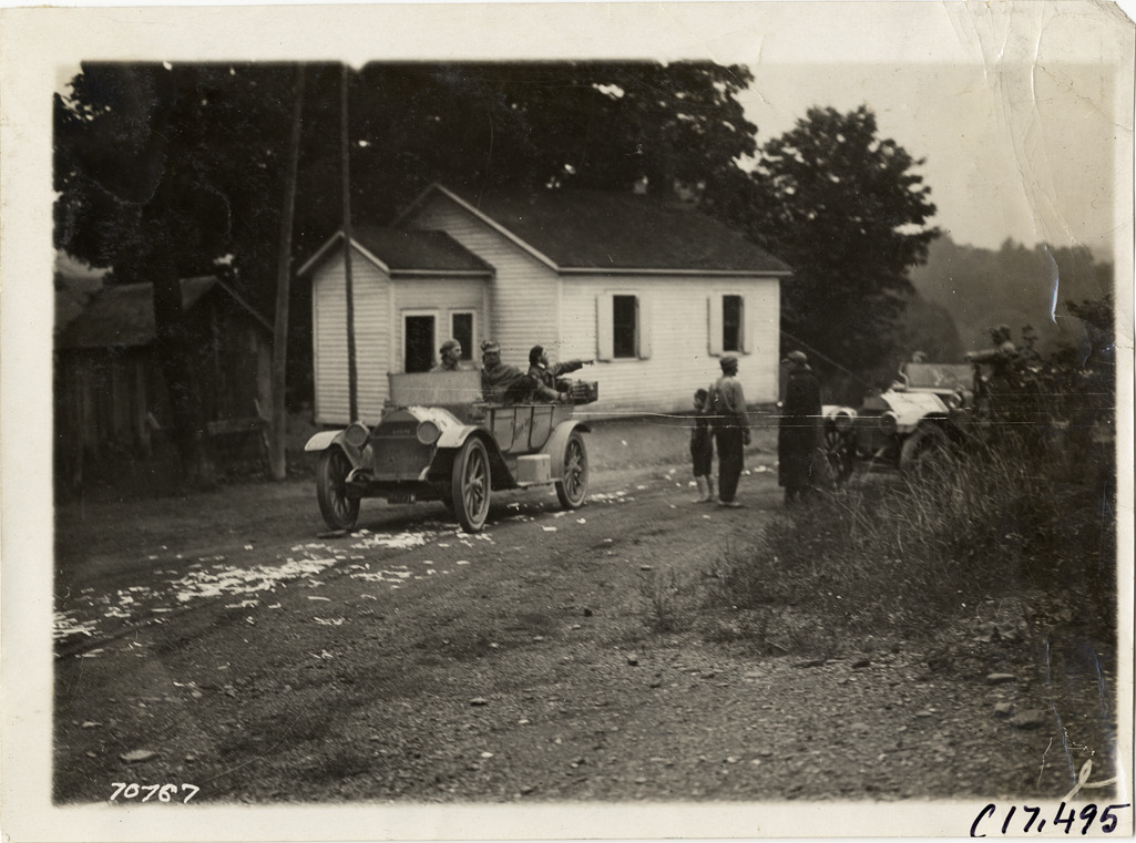 Motorists with automobiles in road, 1911 Buffalo Reliability Run