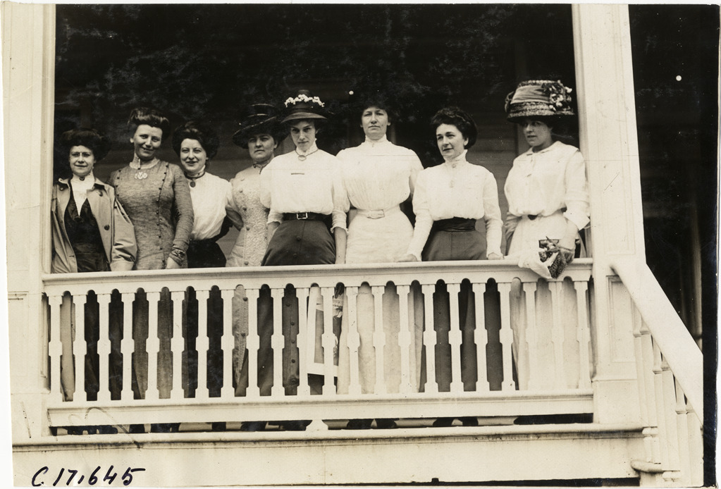 Women posing on porch of Grants House hotel, 1909 Catskill-Berkshire Tour
