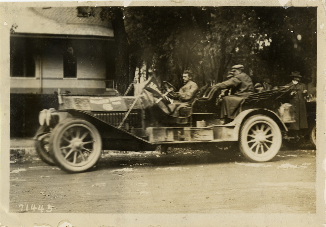 Favorite this☆ Motorists in Thomas automobile, 1911 Glidden Tour Description: View of motorists in Thomas car no. 6 during the 1911 Glidden Tour. Stamped on back: "Spooner & Wells, Inc., photographers, telephones 3472-3473 Columbus, 1931 Broadway, New York." Handwritten on back: "Tours--Glidden Tour, 1911." Details Resource ID: na019737 Creator: Spooner & Wells Subject: Automobiles E.R. Thomas Motor Company Glidden Tour (1911) Automobile driving--Competitions--United States Photographers--New York (State)--New York Photographic prints Date Issued: 1911-10 Format: 1 photographic print ; 5 x 7 in. Member of: National Automotive History Collection Lazarnick Collection Filing Location: Tours--Glidden Tour, 1911 #29 Rights: Physical rights are retained by DPL. Copyright is retained in accordance with U.S. copyright laws.