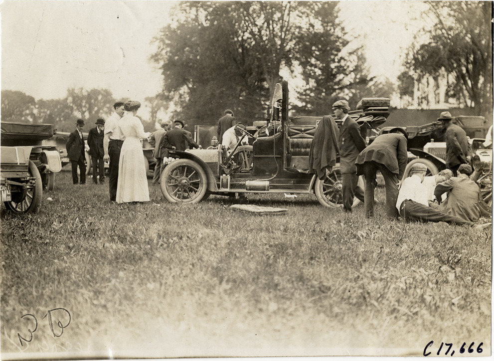 Men and women with automobiles, 1909 Catskill-Berkshire Tour