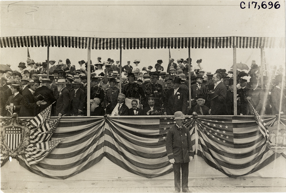 Spectators and dignitaries in grandstand, 1909 Queensboro Bridge Celebration