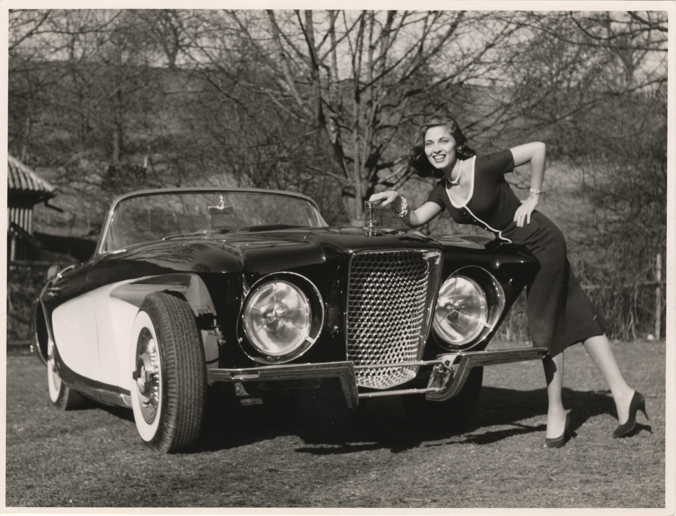Favorite this☆ Woman posing with 1955 Gaylord automobile Description: View of young woman leaning on front end of 1955 Gaylord car. Handwritten on back: "1955 Gaylord." Details Resource ID: na020061 Subject: Automobiles Gaylord Cars Ltd. Models (Persons) Photographic prints Date Issued: Unknown year Format: 1 photographic print ; 7 x 9.25 in. Member of: National Automotive History Collection Filing Location: Automobiles-Gaylord Rights: Physical rights are retained by DPL. Copyright is retained in accordance with U.S. copyright laws.