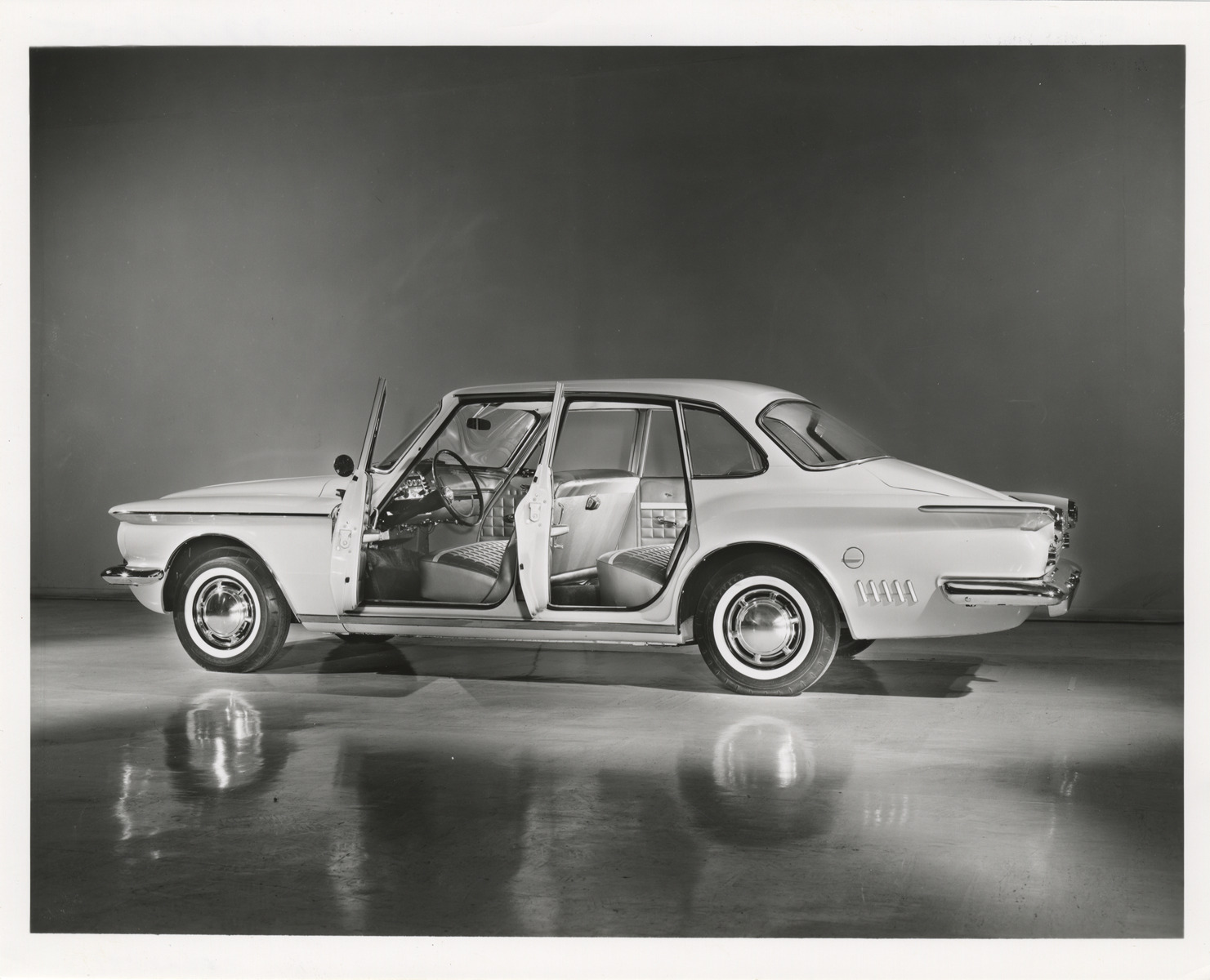 Favorite this☆ 1962 Dodge Lancer 770 automobile Description: Side view of a 1962 Dodge Lancer 770 sedan, with open doors, showing interior. Handwritten on back: "Dodge, 1962, Lancer 770." Details Resource ID: na020081 Subject: Dodge Lancer automobile Photographic prints Date Issued: Unknown year Format: 1 photographic print ; 8 x 10 in. Member of: National Automotive History Collection Filing Location: Automobiles-Dodge Rights: Physical rights are retained by DPL. Copyright is retained in accordance with U.S. copyright laws.