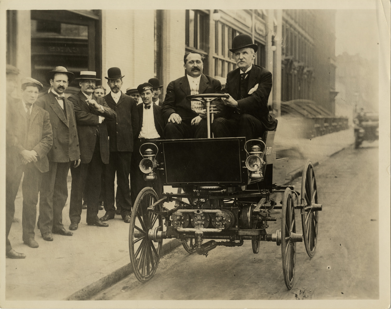 George B. Selden and Ernest S. Partridge in Selden automobile