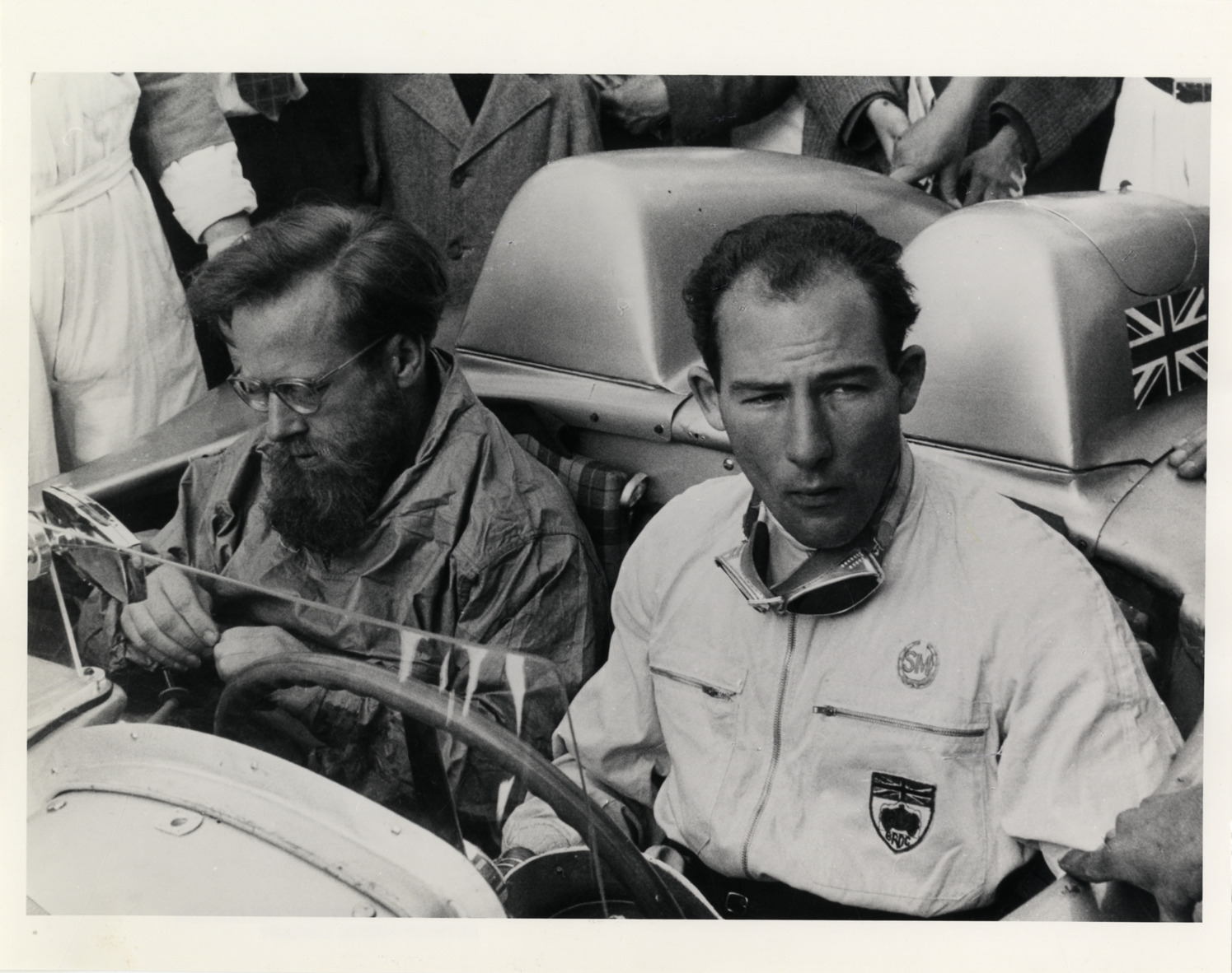 Favorite this☆ Driver Stirling Moss and Denis Sargent Jenkinson in automobile Description: Close-up view of Stirling Moss and navigator Denis Sargent Jenkinson in car. Details Resource ID: na020163 Subject: Moss, Stirling, 1929- Jenkinson, Denis Automobile racing drivers Photographic prints Date Issued: Unknown year Format: 1 photographic print ; 8 x 10 in. Member of: National Automotive History Collection Filing Location: Biography-Moss, Stirling Rights: Physical rights are retained by DPL. Copyright is retained in accordance with U.S. copyright laws.