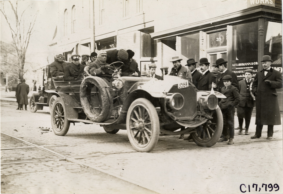 Motorists in automobile, 1907 Chicago Reliability Run