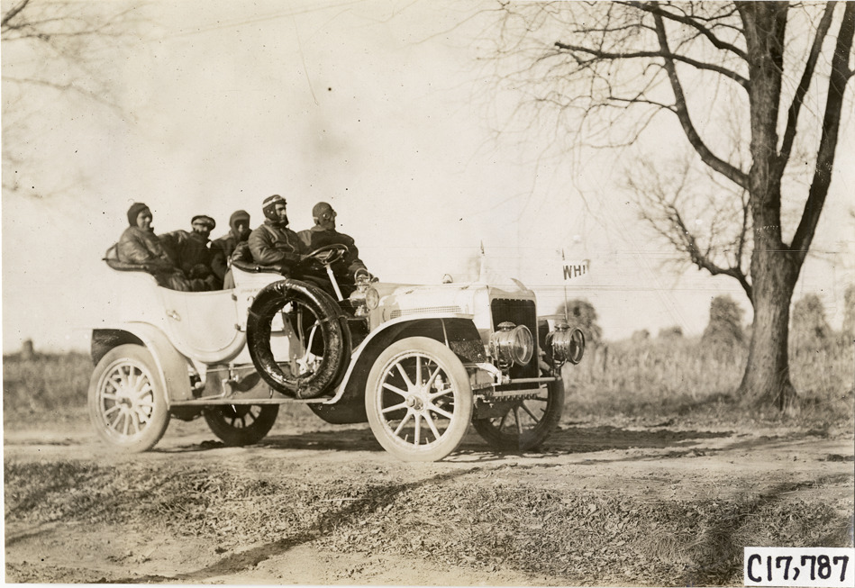 H.K. Sheridan and passengers in White Steamer automobile, 1907 Chicago Reliability Run