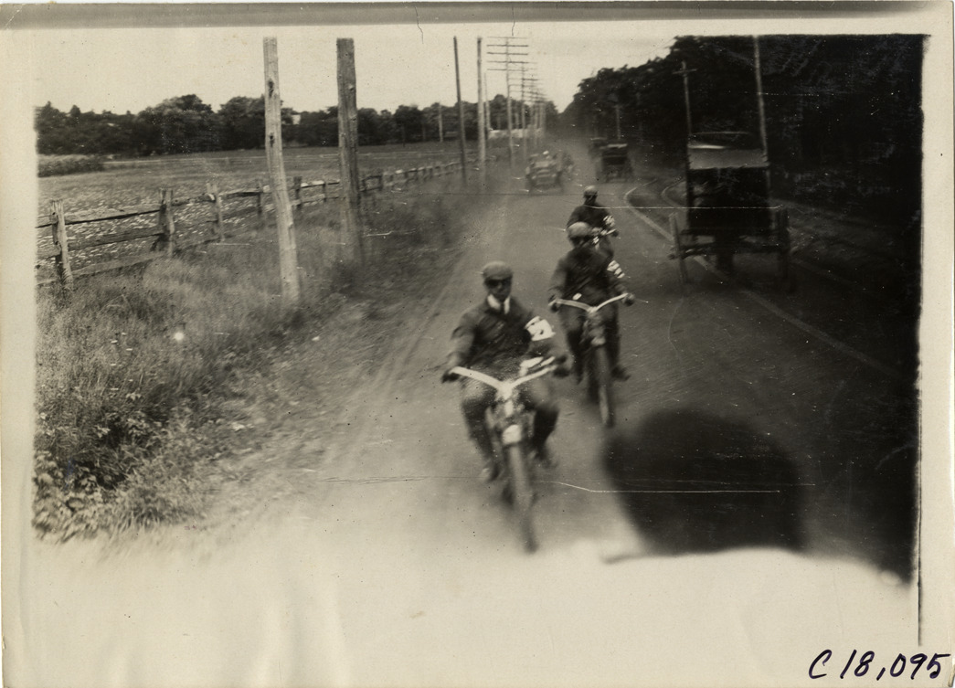 Men riding motorcycles, 1910 Federation of American Motorcyclists Endurance Run