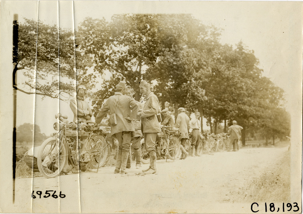 Motorcyclists on roadside near Buffalo, New York, 1911 Federation of American Motorcyclists Tour