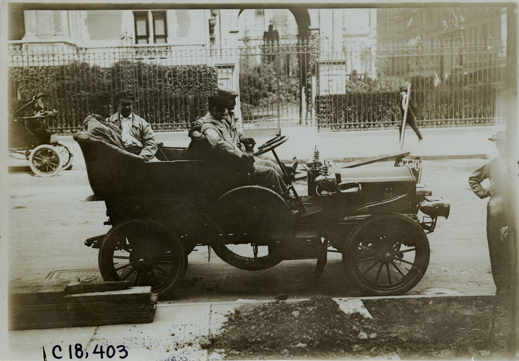 Favorite this☆ Motorists in White Steamer automobile, 1905 Glidden Tour Description: View of driver and passengers in White Steamer car during the 1905 Glidden Tour. Wrought-iron fence in background. Handwritten on back: "White Steamer. Tours--Glidden Tour, 1905." Details Resource ID: na020970 Subject: Automobiles, Steam White Company (Cleveland, Ohio) Glidden Tour (1905) Automobile driving--Competitions--United States Photographic prints Date Issued: 1905 Format: 1 photographic print ; 5 x 7 in. Member of: National Automotive History Collection Lazarnick Collection Filing Location: Tours--Glidden Tour, 1905 #5 Negative Number: Negative #C18,403 Rights: Physical rights are retained by DPL. Copyright is retained in accordance with U.S. copyright laws.