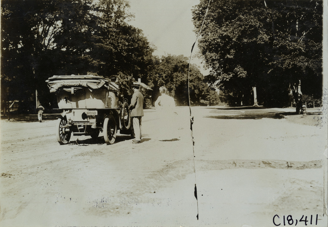 Favorite this☆ Automobile in road, 1905 Glidden Tour Description: View of man and woman standing next to car in road during the 1905 Glidden Tour. Stamped on back: "Photo by F. Ed. Spooner, 1536 B'way, telephone 6536-38th St., New York, N.Y." Handwritten on back: "Tours--Glidden Tour, 1905." Details Resource ID: na020976 Creator: Spooner, F. Ed. Subject: Automobiles Glidden Tour (1905) Automobile driving--Competitions--United States Photographers--New York (State)--New York Photographic prints Date Issued: 1905 Format: 1 photographic print ; 5 x 7 in. Member of: National Automotive History Collection Lazarnick Collection Filing Location: Tours--Glidden Tour, 1905 #6 Negative Number: Negative #C18,411 Rights: Physical rights are retained by DPL. Copyright is retained in accordance with U.S. copyright laws.