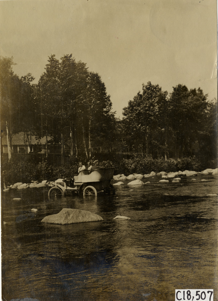 Favorite this☆ Automobile crossing river, 1905 Glidden Tour Description: View of motorists in car crossing a river during the 1905 Glidden Tour. Stamped on back: "N. Lazarnick, 29 West 42nd Street, New York." Handwritten on back: "Tours--Glidden Tour, 1905." Details Resource ID: na021074 Creator: Lazarnick, Nathan Subject: Automobiles Rivers Glidden Tour (1905) Automobile driving--Competitions--United States Photographers--New York (State)--New York Photographic prints Date Issued: 1905 Format: 1 photographic print ; 6.5 x 4.75 in. Member of: National Automotive History Collection Lazarnick Collection Filing Location: Tours--Glidden Tour, 1905 #10 Negative Number: Negative #C18,507 Rights: Physical rights are retained by DPL. Copyright is retained in accordance with U.S. copyright laws.