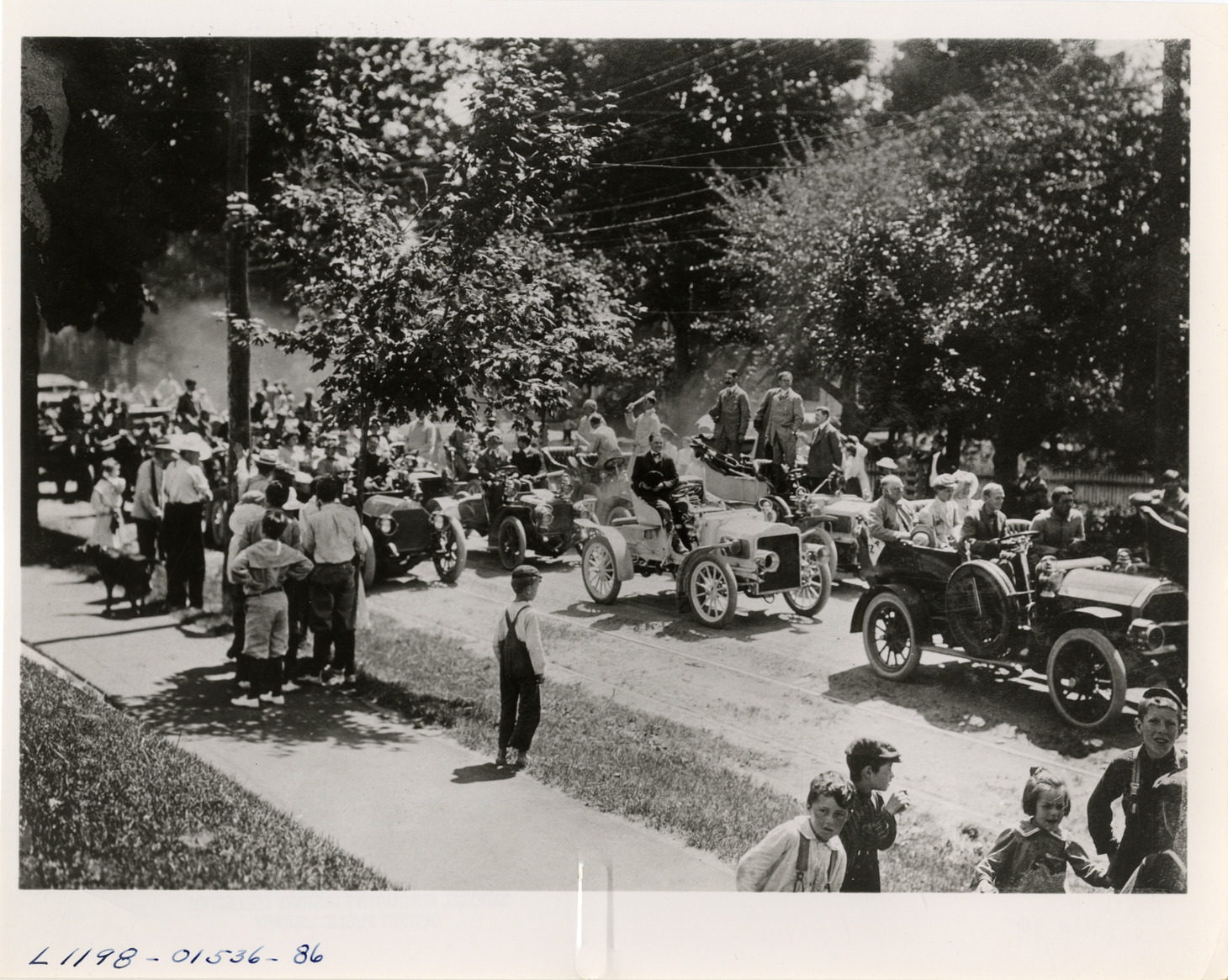 Favorite this☆ Automobiles lined up on road, 1905 Glidden Tour Description: View of motorists in cars lined up road during the 1905 Glidden Tour. Handwritten on back: "Tours--Glidden Tour, 1905." Details Resource ID: na021177 Subject: Automobiles Glidden Tour (1905) Automobile driving--Competitions--United States Photographic prints Date Issued: 1905 Format: 1 photographic print ; 8 x 10 in. Member of: National Automotive History Collection Lazarnick Collection Filing Location: Tours--Glidden Tour, 1905 #14 Rights: Physical rights are retained by DPL. Copyright is retained in accordance with U.S. copyright laws.