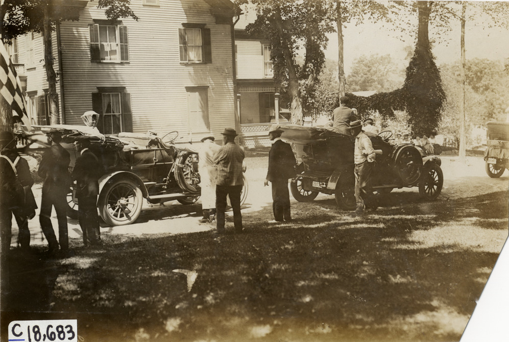 Favorite this☆ Motorist with automobiles in front of wooden-frame house, 1906 Glidden Tour Description: View of motorists with two cars parked in front of wooden-frame house during the 1906 Glidden Tour. Handwritten on back: "Tours--Glidden Tour, 1906." Details Resource ID: na021244 Subject: Automobiles Wooden-frame houses Glidden Tour (1906) Automobile driving--Competitions Photographic prints Date Issued: 1906-07 Format: 1 photographic print ; 4.5 x 6.75 in. Member of: National Automotive History Collection Lazarnick Collection Filing Location: Tours--Glidden Tour, 1906 #3 Negative Number: Negative #C18,683 Rights: Physical rights are retained by DPL. Copyright is retained in accordance with U.S. copyright laws.