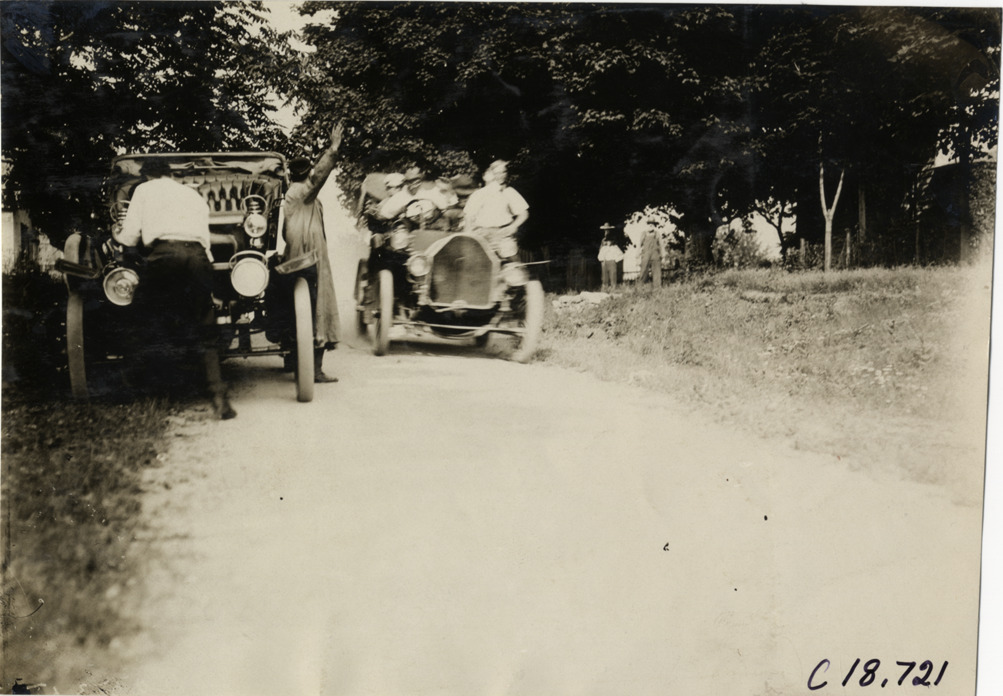 Favorite this☆ Motorists in automobile passing automobile on roadside, 1906 Glidden Tour Description: View of motorists in car passing another car on roadside during the 1906 Glidden Tour. Handwritten on back: "Tours--Glidden Tour, 1906." Details Resource ID: na021285 Subject: Automobiles Glidden Tour (1906) Automobile driving--Competitions Photographic prints Date Issued: 1906-07 Format: 1 photographic print ; 4.75 x 6.75 in. Member of: National Automotive History Collection Lazarnick Collection Filing Location: Tours--Glidden Tour, 1906 #4 Negative Number: Negative #C18,721 Rights: Physical rights are retained by DPL. Copyright is retained in accordance with U.S. copyright laws.