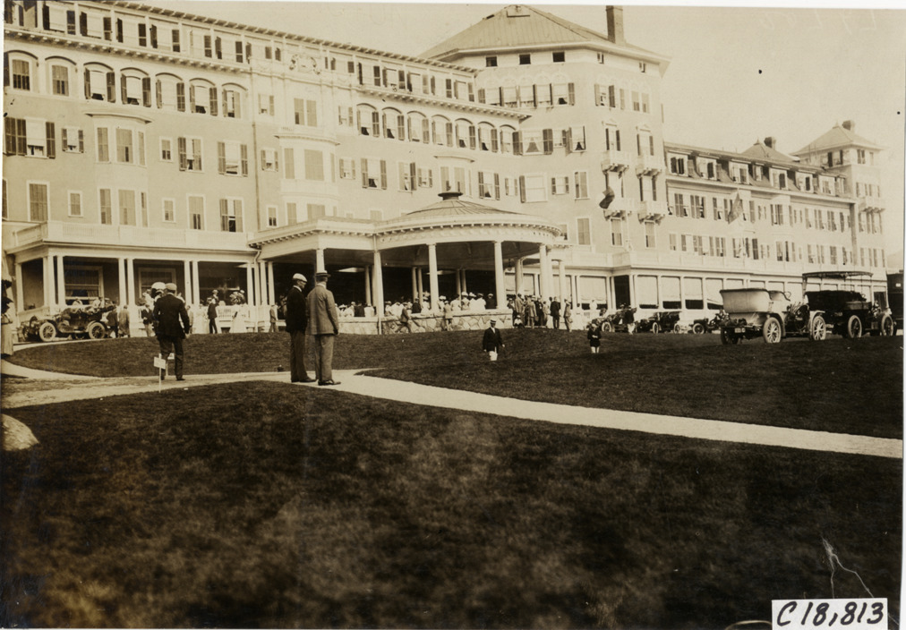 View of hotel during the 1906 Glidden Tour. Handwritten on back: "Tours--Glidden Tour, 1906."