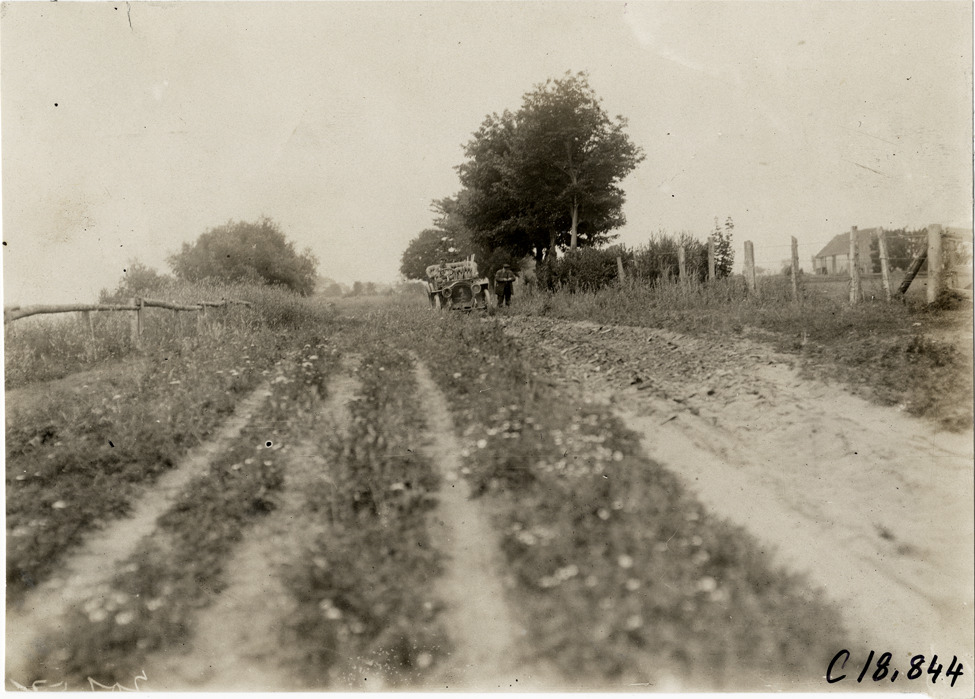 Motorists with automobile on rural dirt road, 1906 Glidden Tour