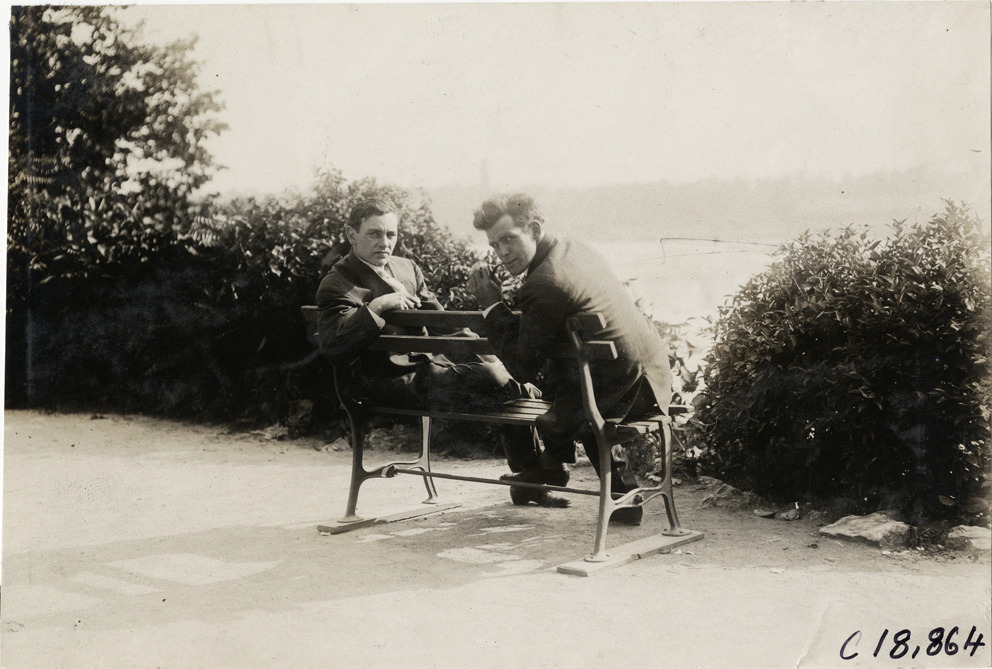 Favorite this☆ Two men posing on park bench, 1906 Glidden Tour Description: View of two men posing on park bench during the 1906 Glidden Tour. Handwritten on back: "Tours--Glidden Tour, 1906." Details Resource ID: na021436 Subject: Benches Glidden Tour (1906) Automobile driving--Competitions Photographic prints Date Issued: 1906-07 Format: 1 photographic print ; 4.5 x 6.75 in. Member of: National Automotive History Collection Lazarnick Collection Filing Location: Tours--Glidden Tour, 1906 #10 Negative Number: Negative #C18,864 Rights: Physical rights are retained by DPL. Copyright is retained in accordance with U.S. copyright laws.
