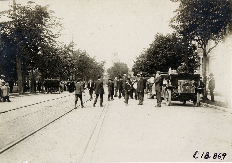 Spectators in street, 1906 Glidden Tour