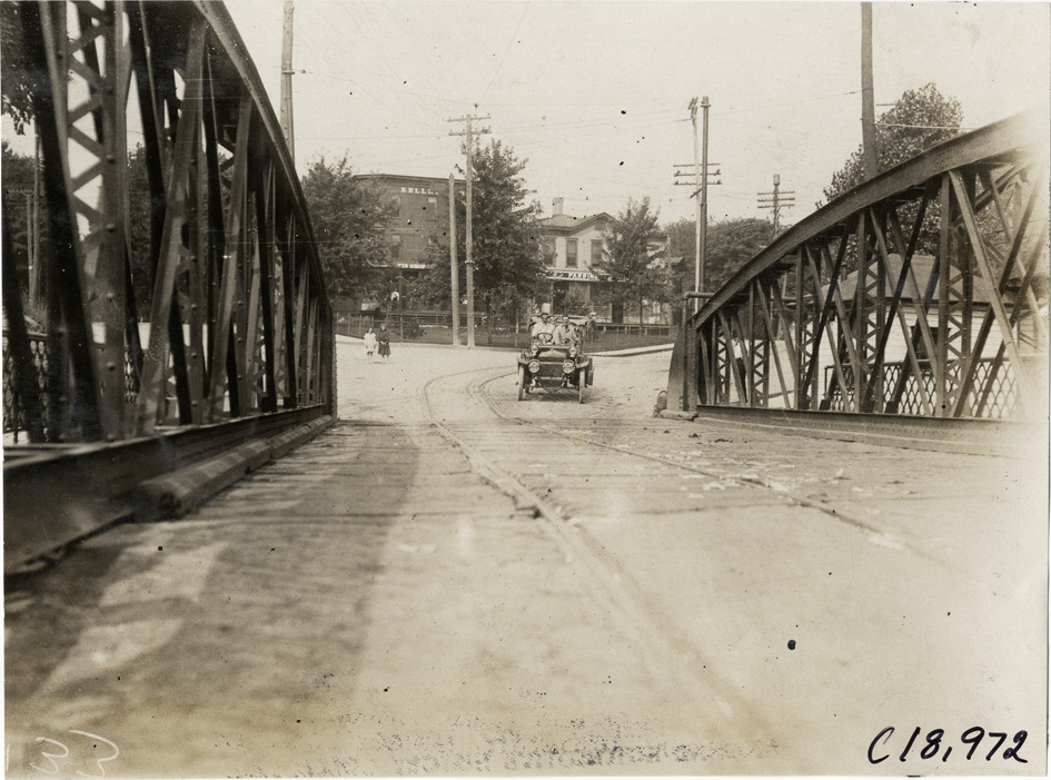 Favorite this☆ Automobile approaching bridge, 1906 Glidden Tour Description: Front view of driver and passenger in car approaching a bridge during the 1906 Glidden Tour. Handwritten on back: "Tours--Glidden Tour, 1906." Details Resource ID: na021546 Subject: Automobiles Bridges Glidden Tour (1906) Automobile driving--Competitions Photographic prints Date Issued: 1906-07 Format: 1 photographic print ; 4.75 x 6.25 in. Member of: National Automotive History Collection Lazarnick Collection Filing Location: Tours--Glidden Tour, 1906 #14 Negative Number: Negative #C18,972 Rights: Physical rights are retained by DPL. Copyright is retained in accordance with U.S. copyright laws.