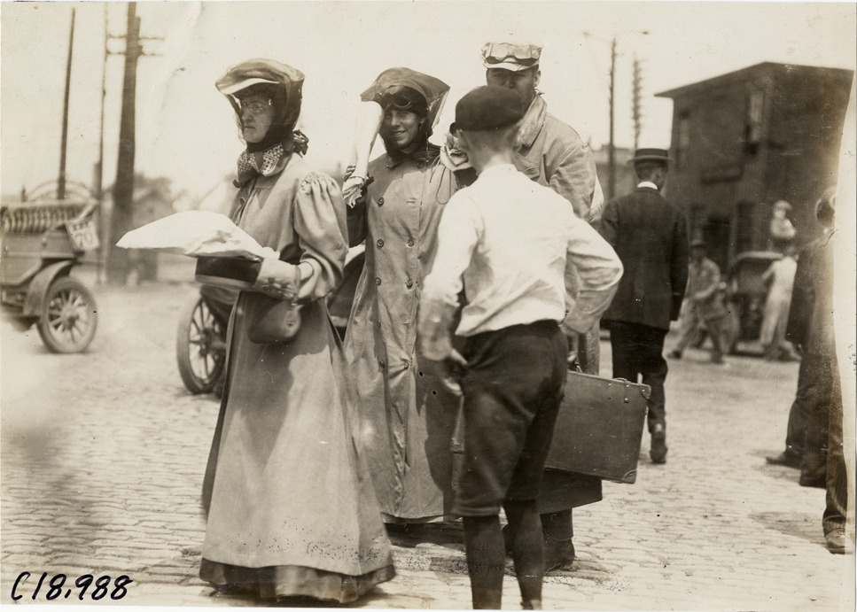 Favorite this☆ Motorists standing in street, 1906 Glidden Tour Description: Close-up view of two women and a man, wearing driving clothes, standing in the middle of street during the 1906 Glidden Tour. Teenage boy stands in foreground. Handwritten on back: "Tours--Glidden Tour, 1906." Details Resource ID: na021563 Subject: Automobile drivers Glidden Tour (1906) Automobile driving--Competitions Photographic prints Date Issued: 1906-07 Format: 1 photographic print ; 4.75 x 6.5 in. Member of: National Automotive History Collection Lazarnick Collection Filing Location: Tours--Glidden Tour, 1906 #15 Negative Number: Negative #C18,988 Rights: Physical rights are retained by DPL. Copyright is retained in accordance with U.S. copyright laws.