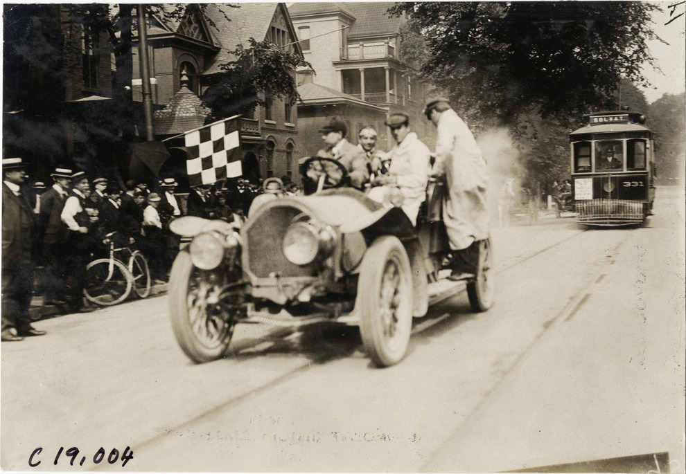 Favorite this☆ Motorists in automobile, 1906 Glidden Tour Description: View of driver and passengers in car during the 1906 Glidden Tour. Spectators watch from sidewalk; streetcar in background. Handwritten on back: "Tours--Glidden Tour, 1906." Details Resource ID: na021579 Subject: Automobiles Cable cars (Streetcars) Glidden Tour (1906) Automobile driving--Competitions Photographic prints Date Issued: 1906-07 Format: 1 photographic print ; 4.5 x 6.75 in. Member of: National Automotive History Collection Lazarnick Collection Filing Location: Tours--Glidden Tour, 1906 #16 Negative Number: Negative #C19,004 Rights: Physical rights are retained by DPL. Copyright is retained in accordance with U.S. copyright laws.