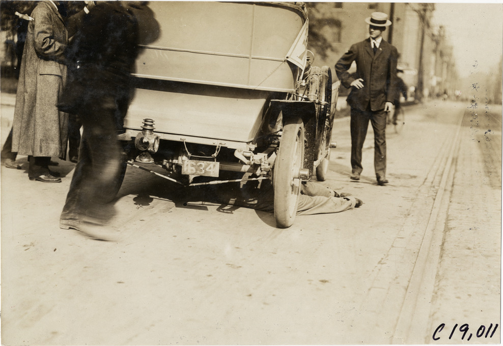 Favorite this☆ Motorist working under automobile, 1906 Glidden Tour Description: Rear view of man working under car during the 1906 Glidden Tour. Handwritten on back: "Tours--Glidden Tour, 1906." Details Resource ID: na021585 Subject: Automobiles Glidden Tour (1906) Automobile driving--Competitions Photographic prints Date Issued: 1906-07 Format: 1 photographic print ; 4.5 x 6.5 in. Member of: National Automotive History Collection Lazarnick Collection Filing Location: Tours--Glidden Tour, 1906 #16 Negative Number: Negative #C19,011 Rights: Physical rights are retained by DPL. Copyright is retained in accordance with U.S. copyright laws.