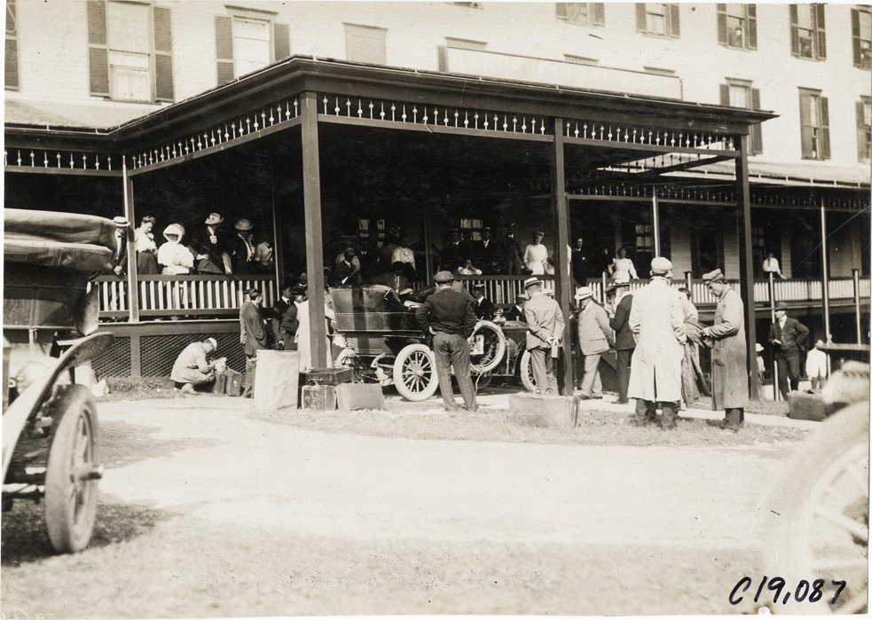 Favorite this☆ Motorists and automobile in front of Rangeley Lake House, 1906 Glidden Tour Description: View of motorists and car in front of the Rangeley Lake House in Rangeley, Maine during the 1906 Glidden Tour. Handwritten on back: "Tours--Glidden Tour, 1906." Details Resource ID: na021661 Subject: Hotels--Maine--Rangeley Automobiles--Maine--Rangeley Glidden Tour (1906) Automobile driving--Competitions Photographic prints Date Issued: 1906-07 Format: 1 photographic print ; 4.75 x 6.5 in. Member of: National Automotive History Collection Lazarnick Collection Filing Location: Tours--Glidden Tour, 1906 #19 Negative Number: Negative #C19,087 Rights: Physical rights are retained by DPL. Copyright is retained in accordance with U.S. copyright laws.