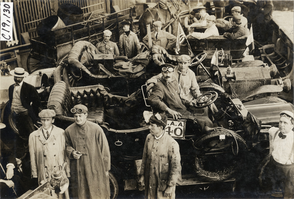 Favorite this☆ Motorists with automobiles on ferry, 1906 Glidden Tour Description: Close-up view of motorists with cars on ferry during the 1906 Glidden Tour. Handwritten on back: "Tours--Glidden Tour, 1906." Details Resource ID: na021706 Subject: Automobiles Ferries Glidden Tour (1906) Automobile driving--Competitions Photographic prints Date Issued: 1906-07 Format: 1 photographic print ; 4.5 x 6.5 in. Member of: National Automotive History Collection Lazarnick Collection Filing Location: Tours--Glidden Tour, 1906 #21 Negative Number: Negative #C19,130 Rights: Physical rights are retained by DPL. Copyright is retained in accordance with U.S. copyright laws.